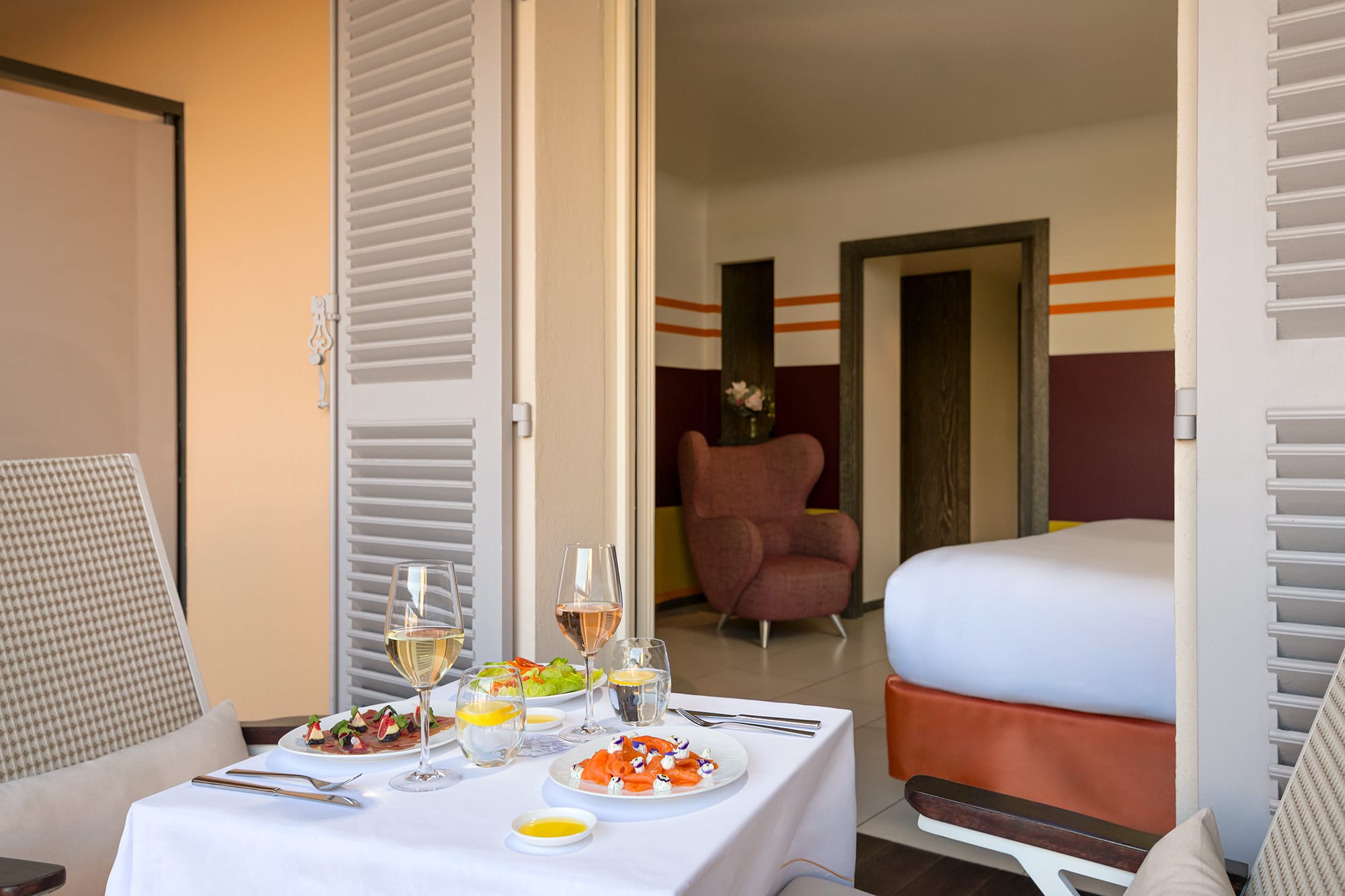 Adorned with candy colours and a private terrace overlooking the hotel’s peaceful landscaped patio, our Patio Terrace rooms invite guests to soak up the Côte d’Azur sunshine. Measuring 26 m², they offer luxurious comfort, plus novel round beds in some rooms. A nod to glamour, the shower rooms are embellished with tiles in soothing golden shades.